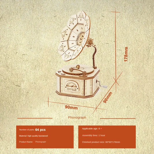 Puzzle 3D en bois | Gramophone musical 64 pièces